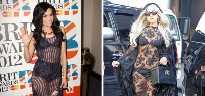 Lady Gaga ve Jessie J, vücutlarına ne kadar güvendiklerini giydikleri aynı tarz transparan elbiseyle gösterdi.