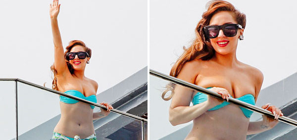 Mavi bikinisiyle hayranlarının karşısına çıkan Gaga, düzgün vücuduyla dikkat çekti.