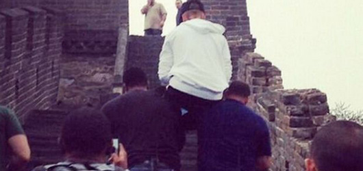 19 yaşındaki şarkıcı Justin Bieber, yürümek yerine Çin Seddi’ne korumaların omzunda tırmandı.