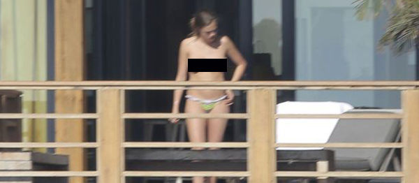 Plaja yakın bir bölgede kiraladığı evinin balkonunda üstsüz olarak güneşlenen Delevingne’i paparazziler adım adım takip etti.