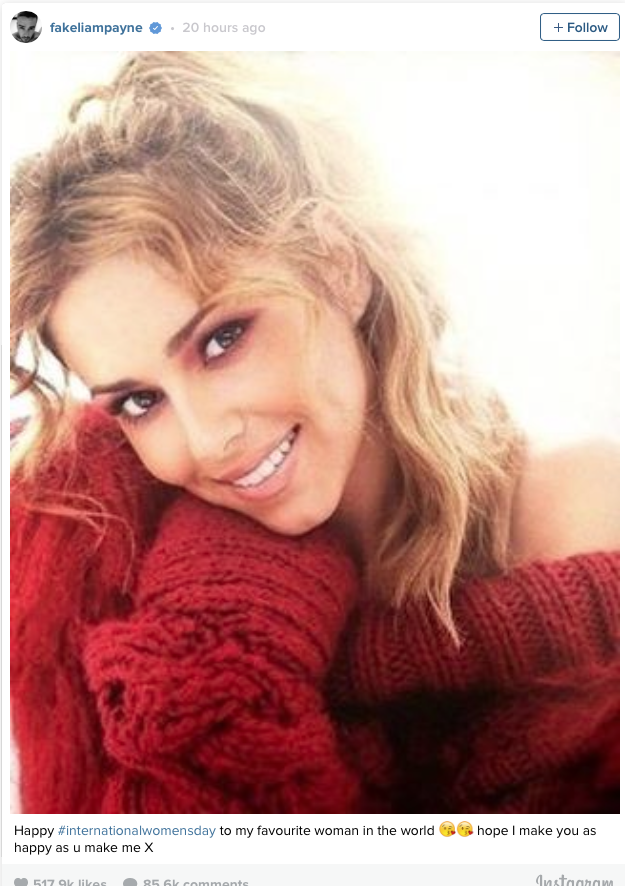 Sevgilisini ‘Dünya’daki favori kadını‘ olarak tanımlayan Liam, fotoğrafın açıklamasına “Dünya’daki favori kadınımın #uluslararasıkadınlargünü kutlu olsun. Umarım senin beni mutlu ettiğin gibi ben de seni mutlu edebiliyorumdur X.” yazdı.