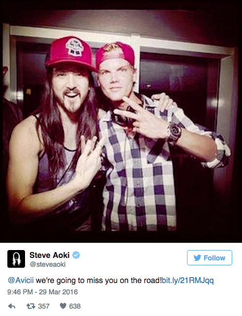 Steve Aoki de bu kararı bir fotoğrafla karşılayarak Avicii’yi özleyeceğini söyledi: