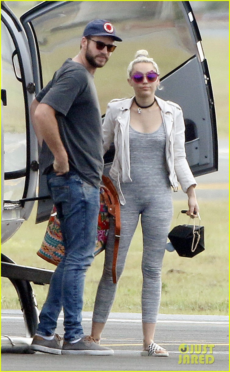 Liam Hemsowrth And Miley Cyrus Arrive Into Brisbane