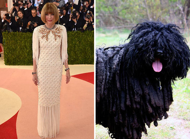 Anna Wintour’un elbisesindeki detaylar puli cinsi minnoşları andırıyor.