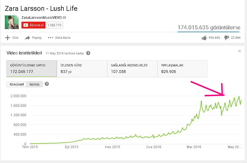 İşte ”Lush Life” klibinin son zamanlardaki gösterim grafiği;
