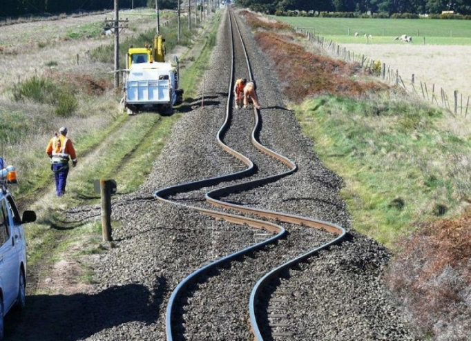 Üzerinden deprem geçmiş bir tren yolu.