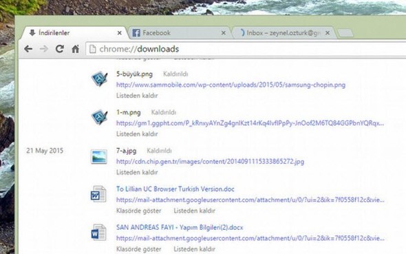 Adres çubuğuna chrome://downloads yazarsanız, tüm indirmelerinizi bir liste halinde göreceksiniz.