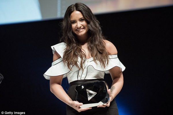 Güzel şarkıcı Demi Lovato kısa bir süre önce Cannes’da yapılan Cannes Lions Festivali kapsamında düzenlenen Original Content Seminerine katıldı. 24 yaşındaki yıldız seminerde Youtube hesabının 10 milyon aboneye ulaşmasından dolayı ‘Elmas İzlenme Butonu’ ödülü ile onurlandırıldı. İşte Demi’nin görüntüleri: