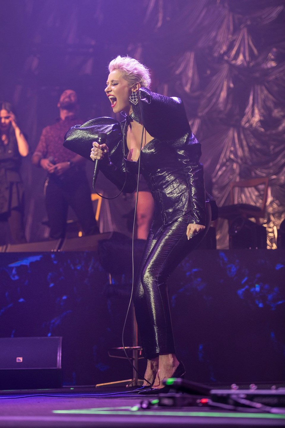 Giydiği siyah kıyafetle kötü peri Malefiz’e benzetilen Sıla hareketli şarkılar öncesi seyirciye seslendi: Bütün açık yaralarınıza tuzları döküp rahatladıysanız artık biraz eğlenmek niyetindeyim.