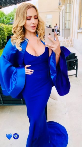 Hadise daha sonra ise mavi, balık kesim elbisesiyle çekilmiş bir fotoğraf paylaştı. Derin göğüs dekolteli elbisesi de beğeni topladı.