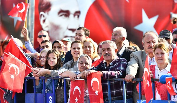 Dokuz Eylül Üniversitesi Karadeniz Halk Dansları Topluluğu’nun gösterisi, Ege Ordusu ve Garnizon Komutanlığı Bölge Bandosu, Güney Deniz Saha Komutanlığı Bandosu ve Hava Eğitim Komutanlığı Bandosu’ndan oluşan karma bandonun icra ettiği marşlarla renklenen bayram kutlaması, Cumhuriyet Meydanı’ndaki resmi geçit töreniyle son buldu.