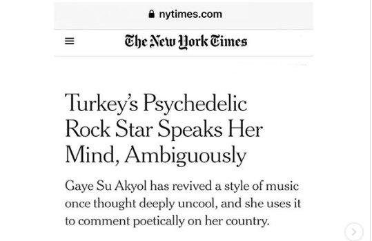 New York Times, muhabirlerinden Alex Marshall’ın hazırladığı haberde 1970’lerde ülkede popüler olan bir müzik türünü hayata döndüren Gaye Su Akyol’un ününün Türkiye ile sınırlı olmadığını, Türk usulü saykodelik rock yapan şarkıcının yabancı ülkelerde de ünlendiği ifadesine yer verildi.