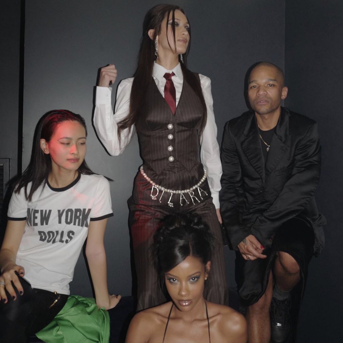 Paris sokaklarını podyuma çeviren Hadid’in giydiği seksi yelekle kombinlediği “Dilara” yazan ışıltılı kemeri de şıklığının ilginç detaylarındandı