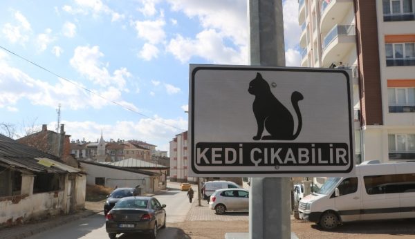 Sivas Belediyesi, hayvansever bir vatandaşın isteğini geri çevirmeyip kedi yaralanmalarının ve ölümlerinin önüne geçmek adına, kentin birçok noktasına ‘Kedi çıkabilir’ tabelaları astı. Başkan Yardımcısı Ahmet Duman, ‘Kedi Çıkabilir’ tabelalarıyla beraber farkındalık oluşturmak istediklerini söyledi.
