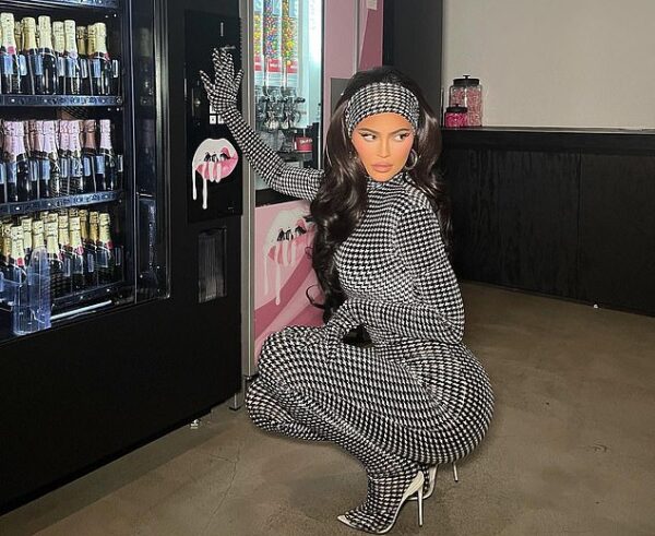 Kardashian’ların yıldızı Kylie Jenner, markasına ait içecek otomatlarının önünde poz verdi. Siyah beyaz bütün vücudunu saran balık derisi desenli seksi retro tulumuyla görenleri kendine hayran bırakan ünlü yıldızın, kıyafetiyle uyumlu, gözlerini ön plana çıkaran yine Retro tarzı makyajını ise Ariel Tejada yaptı.