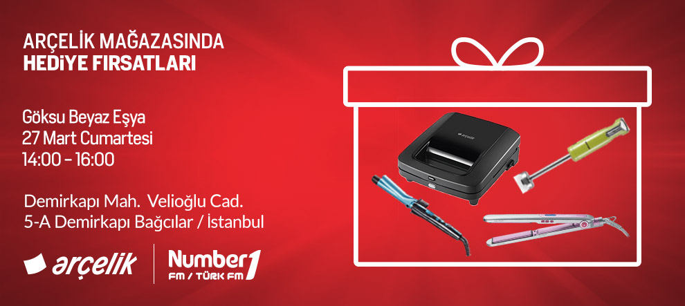 Number1 Fm ve Number1 Türk Fm, 27 Mart Cumartesi günü Göksu Beyaz Eşya Arçelik Mağazası’ndan canlı yayın yapacak. 14:00 – 16:00 saatleri arasında ortak canlı yayını dinleyen ve mağazaya gelen dinleyicilerimize Arçelik’in birbirinden güzel armağanları olacak.