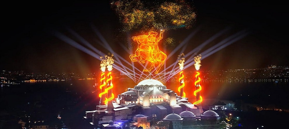 İstanbul’un Fethi’nin 568. yıl dönümü kapsamında Ayasofya Semalarında ve Galata Kulesi’nde bir dizi görsel etkinlik düzenlendi. Fethe dair bilgilerin de seslendirildiği coşkulu kutlamada, fethin sembolü Ayasofya’nın semasına Türkiye’de ilk kez uygulanan gökyüzü video haritalama yöntemiyle fetih görselleri yansıtıldı.
