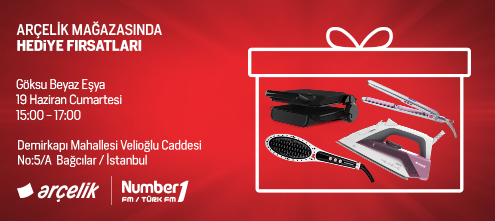 Number1 Fm ve Number1 Türk Fm, 19 Haziran Cumartesi günü Göksu Beyaz Eşya Arçelik Mağazası’ndan canlı yayın yapacak. 15:00 – 17:00 saatleri arasında ortak canlı yayını dinleyen ve mağazaya gelen dinleyicilerimize Arçelik’in birbirinden güzel armağanları olacak.