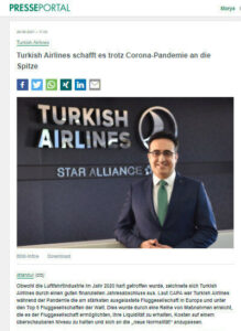 Almanya’da yayın yapan Presseportal isimli haber sitesi, havacılık sektörünün geçtiğimiz yıl büyük darbe almasına karşın THY’nin iyi bir mali yıl sonu geçirdiğini vurguladı.