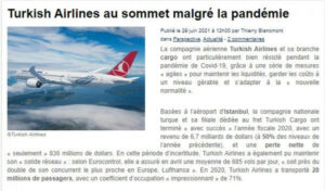 Yayımlanan makalede, “Türk Hava Yolları ve Kargo kolu, bir dizi ‘çevik’ önlem sayesinde koronavirüs pandemisi sırasında iyi bir performans sergiledi.” denildi.
