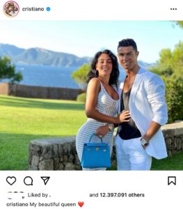 Instagram’da 317 milyon takipçi ile uygulamanın popüler isimleri arasında yer alan Ronaldo, paylaştığı fotoğrafın altına, “Benim güzel kraliçem” notunu düştü.