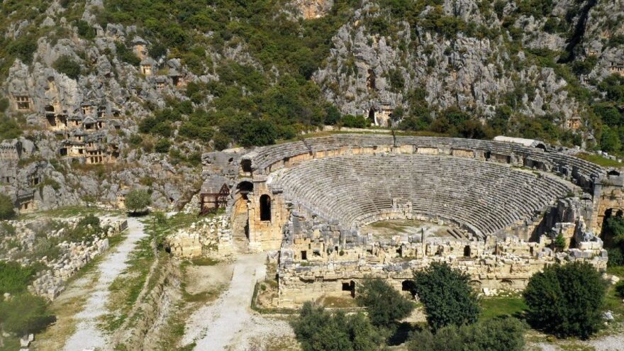 Antalya’nın Demre ilçesindeki Myra Antik Kenti’nde, Akdeniz Üniversitesi Edebiyat Fakültesi Arkeoloji Bölümü Öğretim Üyesi Prof. Dr. Nevzat Çevik başkanlığında yürütülen kazılarda Myra Antik Tiyatrosu Orkestrası’nın 3,5 metre altında seramik parçaları bulundu.