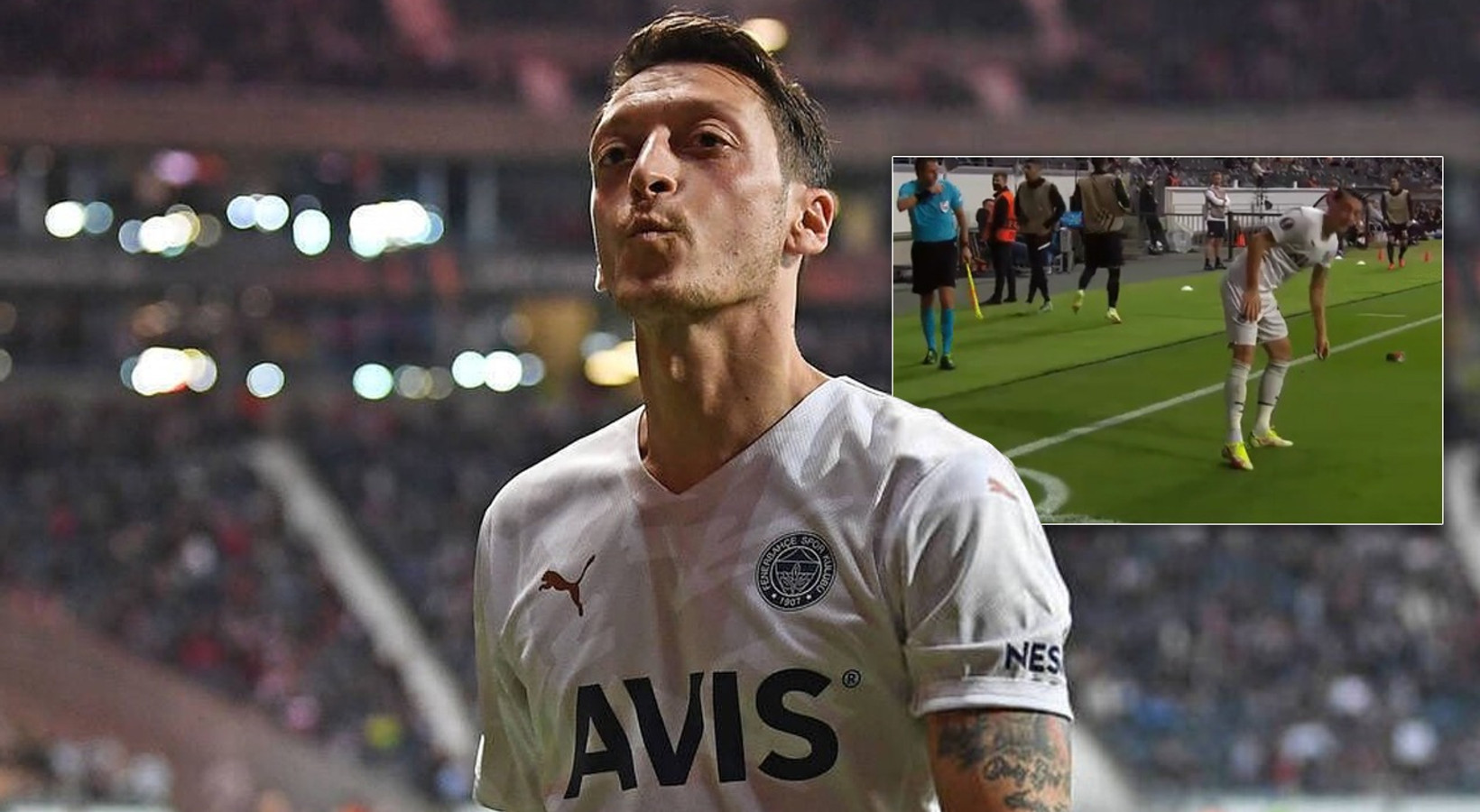 Mesut Özil,kendisine yabancı madde fırlatan Eintracht Frankfurt taraftarlarına öpücük attı