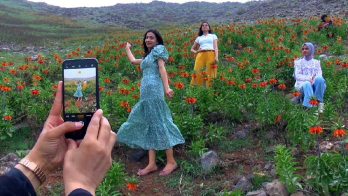 Muş’ta 1800 rakımlı dağın zirvesi, sadece 15 gün canlılığını koruyan ve halk arasında ‘ağlayan gelin’ olarak bilinen ters lalelerle renklendi. İki saatlik zorlu yolculuğun ardından zirveye çıkanlar, koparmanın suç olduğu çiçeğe dokunmaya bile çekindi.
