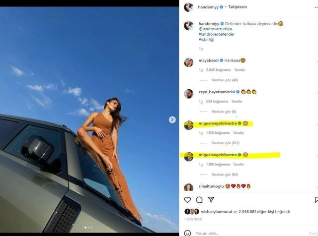 Hande Erçel’i hem takip eden hem de fotoğraflarına yorumlar yapan İspanyol oyuncunun abayı yaktığı iddia edildi.