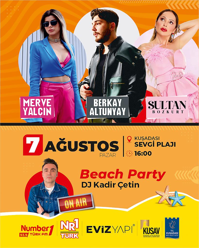 “Terapi” şarkısıyla son dönemlerde iyi bir çıkış yakalayan Sultan Bozkurt özellikle dijital platformlarda gençlerin en sevdiği sanatçı haline gelen Berkay Altunyay Tik Tok ve Instagram’da paylaştığı videolarla fenomen olan Merve Yalçın partide sahnede olacak ve Dj Kadir Çetin’e eşlik edecekler Number1 Kuşadası Beach parti Sevgi Plajı’nda 7 Ağustos pazar günü saat 15:00’te herkese açık ücretsiz olarak gerçekleşecek.