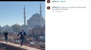 ABD’nin Ankara Büyükelçisi Jeff Flake’den ‘James Bond’ gibi aksiyon dolu hareketler! ABD’nin Ankara Büyükelçisi Jeff Flake, dünyanın en eski alışveriş merkezi olan 558 yıllık Kapalıçarşı‘nın çatısına çıkıp koştu.