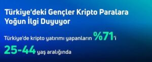 Türkiye’deki kripto para yatırımcıları arasında gençler hatırı sayılır bir yer kaplıyor. Öyle ki, toplam kripto para yatırımcılarının yüzde 71’ini 25-44 yaşları arasındakiler oluşturuyor. 18-24 yaşları arasındakiler ise yüzde 20’lik bir pay alıyor. Yapılan görüşmelerden elde edilen bulgulara göre kripto yatırımı ile ilgilenen birçok üniversite öğrencisi kriptolar hakkında daha fazla bilgi sahibi olmak için çeşitli dersler alıyor.