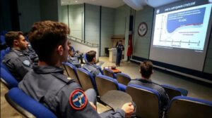 Yarbay Nazım Ata, “Yakın dönemde Sağlık Bilimleri Üniversitesi Hava ve Uzay Hekimliği Ana Bilim Dalı sorumluluğunda yürütülen sağlık muayenelerini geçen, Türkiye’nin ilk uzay yolcusu adayları, misafir ettik. Adaylara öncelikle akademik eğitim verildi. Akademik eğitimin ardından alçak basınç odasında 25 bin fite eş değer irtifada hipoksi eğitimleri verildi ayrıca insan santrifüjü eğitim laboratuvarında da (G-Lab) akselerasyonun etkilerini deneyimlediler. Bu eğitimlerin ardından daha ayrıntılı eğitimler de verilecek. Biz bu eğitimleri vermekten mutluluk duyarız.” ifadelerini kullandı.