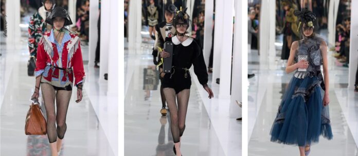 Disney ile iş birliğinden ortaya çıkan Mickey Mouse kulakları couture elbiselerde kendine bir taht edinmekle yetinmeyip; Mickey Mouse’ın şapkasının formu, şapkaları, tişörtleri ve hatta vintage korseleri bile ele geçiriyor. Son dönemin en tartışmalı ayakkabı formu olan Tabi toe ayakkabılar ise, parıltılı ve mavi, kırmızı ve pembe gibi renk seçenekleriyle defilede moda severlerle tekrardan bir araya geliyorlar.