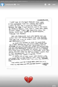 Bu dokunaklı mektubun bu kadar göz önüne çıkmasının nedeni ise top model Bella Hadid’in Instagram sayfasında paylaşması.