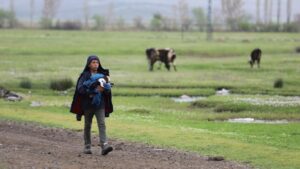 Türkoğlu ilçesi Çobantepe Mahallesi`nde yaşayan 13 yaşındaki Şeref Altun`un ailesinin depremde evi yıkıldı, ahırı zarar gördü. Devletin desteği ve kendi çabalarıyla hayata tutunan Altun ailesi, ahırını onardı. Her gün yaklaşık 300 keçiyi merada ailesiyle otlatmaya çıkartan Şeref Altun, keçilerden birinin doğum yapmasıyla sevinç yaşadı. Oğlaklara “Boncuk” ve “Gümüş” adı veren Altun, yağmurda üşümemeleri için montuna sardığı yavruları meradan kaldıkları çadırın yanındaki ahıra kadar kucağında taşıdı. “Her doğan yeni yavru bizim için umut oluyor” Şeref Altun, otlatmaya çıkardığı keçi sürüsünün içerisinde gebe hayvanların olduğunu, bazılarının da merada doğurduğunu söyledi.