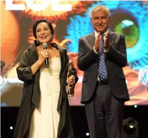 Türkiye Cumhuriyeti’nin 100’üncü yıl dönümü olması nedeniyle verilen “Sinemanın Yüzü” ödüllerini Türkan Şoray ve Kadir İnanır aldı.