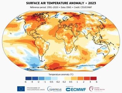 Avrupa Birliği’nin (AB) finanse ettiği Copernicus İklim Değişikliği Servisi (C3S) tarafından Küresel İklim Raporu yayınlandı. 2023 yılının 1850’den bu yana kayıt altına alınan en sıcak yıl olduğu belirtilen raporda, 2023 yılı ortalama küresek sıcaklığın 14,98 derece olduğu ve bir önceki en sıcak yıl olan 2016 yılında kaydedilenden ortalama küresel sıcaklıktan 0,17 derece daha yüksek olduğu aktarıldı.