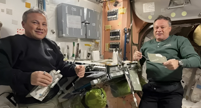 Türkiye’nin ilk astronotu Alper Gezeravcı, Uluslararası Uzay İstasyonu’nda (ISS) yemek yediği ana ait fotoğrafı sosyal medya hesabı üzerinden paylaştı. Gezeravcı, paylaşımında “Uluslararası Uzay İstasyonu’nda Komutan Michael ile yemek keyfi” ifadelerine yer verdi.