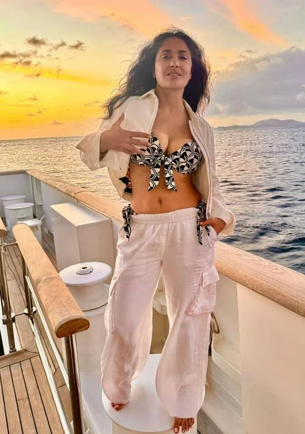 Fransız iş insanı François-Henri Pinault ile evli olan oyuncu Salma Hayek, 58 yaşında olmasına rağmen fit görünümüyle dikkat çekiyor. Bikinisiyle oldukça özgüvenli bir şekilde poz veren Hayek’in fit görünümüyle beraber beslenme tarzı da takipçileri tarafından merak edildi.